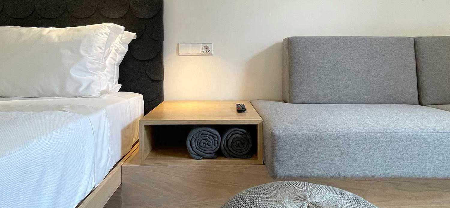This Studio comfortably accommodates two guests. It is equipped with air conditioning, flat-screen TV with cable channels, safe and steam iron. It has a private bathroom with shower, hairdryer and free toiletries (soap, shampoo and shower gel), as well as bed linen and towels. The kitchenette, equipped with a refrigerator, microwave and stove, has a Nespresso® coffee maker, electric kettle, toaster and other kitchen accessories. Free Wi-Fi is available throughout the property and you can find USB and USB-C sockets at the head of the beds.