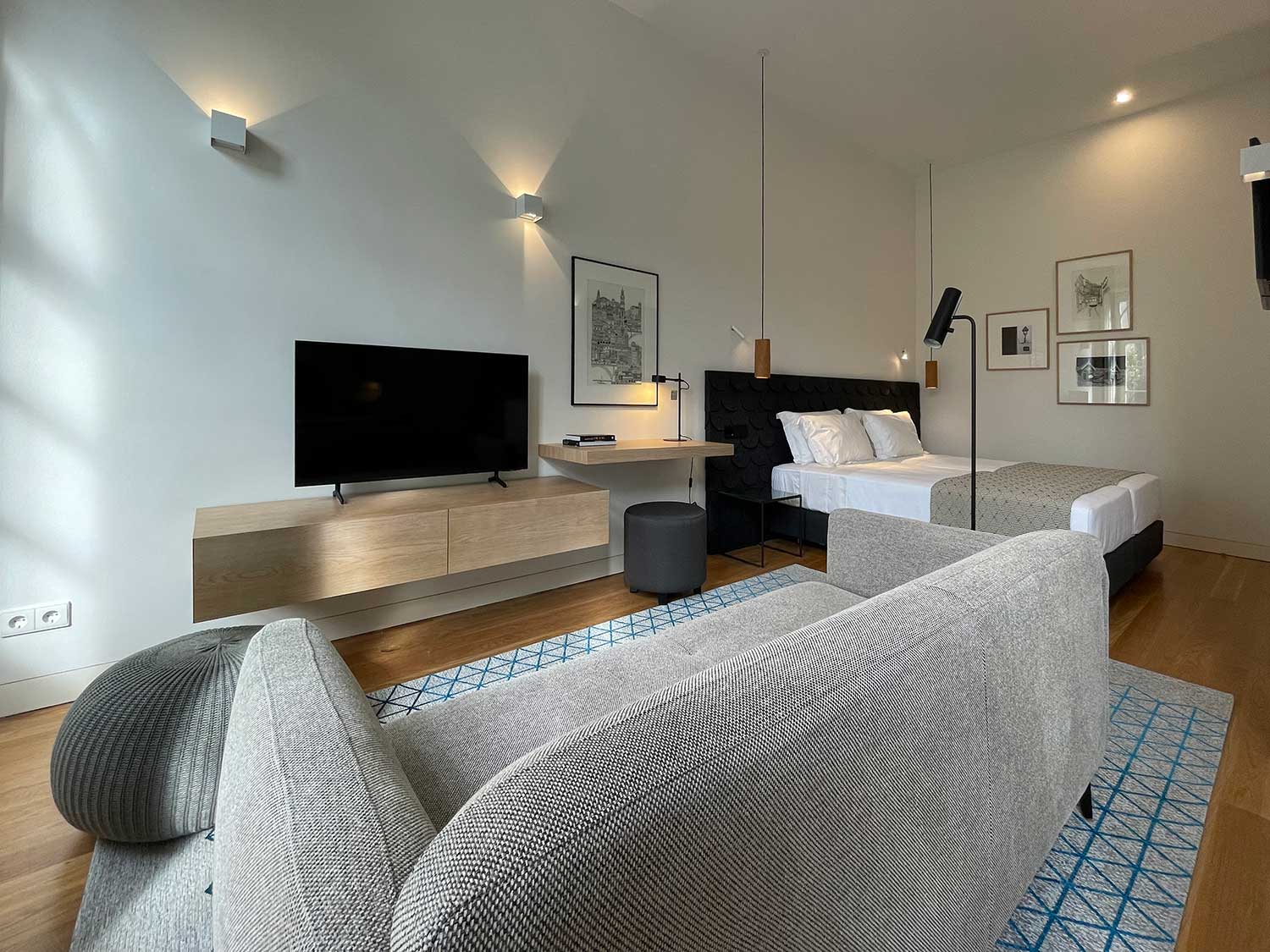 This Studio, with a balcony (city view), has a desk and comfortably accommodate two guests. It is provided with two twin beds, but you can request a king size bed, subject to availability. Studio equipped with air conditioning, 2 flat-screen TVs with cable channels, a safe and a steam iron. It has a private bathroom with shower, hairdryer and free toiletries (soap, shampoo and shower gel), as well as bed linen and towels. The kitchenette, equipped with a refrigerator, microwave and stove, has a Nespresso® coffee maker, electric kettle, toaster and other kitchen accessories. Free Wi-Fi is available throughout the property and you can find USB and USB-C sockets at the head of the beds. A regular cleaning service guarantees a pleasant stay.